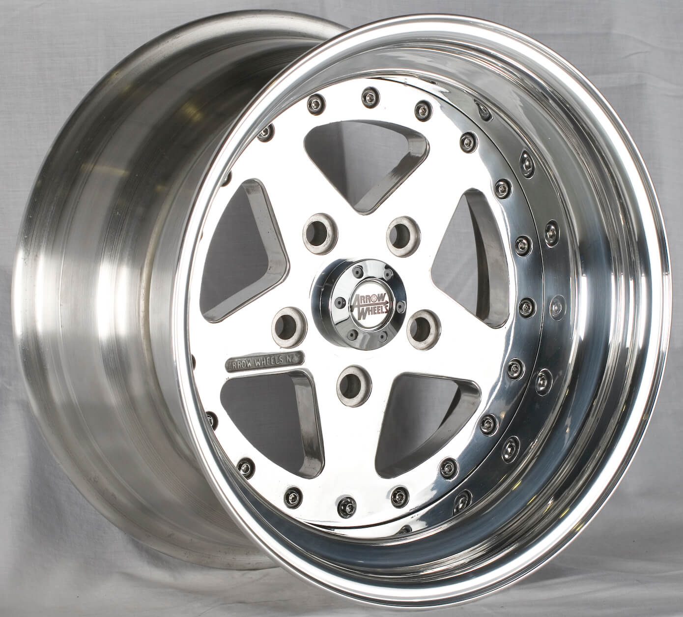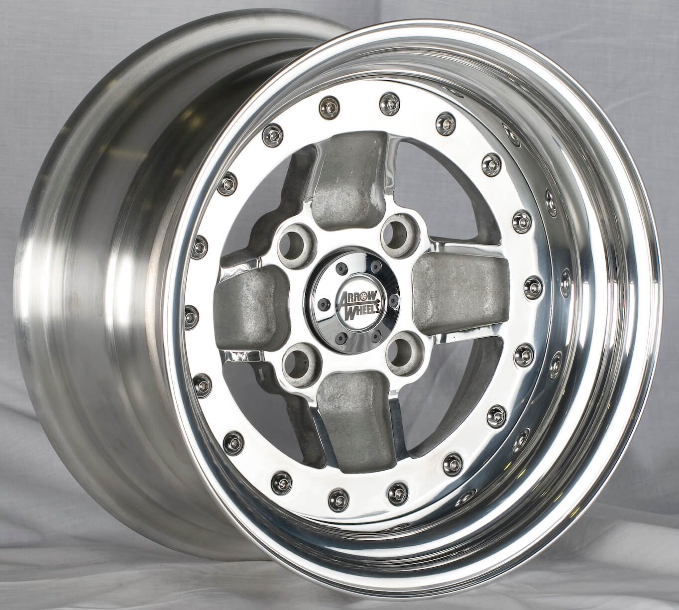 Arrow Wheels are 3 piece constructed wheels consisting of outer & inner rim sections spun from lightweight, high performance alloy, and a centre section cast in high quality, aged hardened alloy. They are used on street vehicles, race cars, hot rods, drag cars, drift cars & muscle cars.